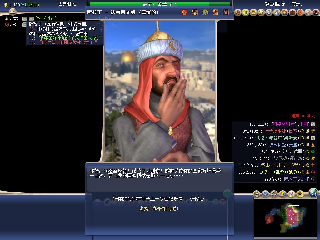 标题: 【动态难度】中国的和平崛起之路----CIV4BTS3.19