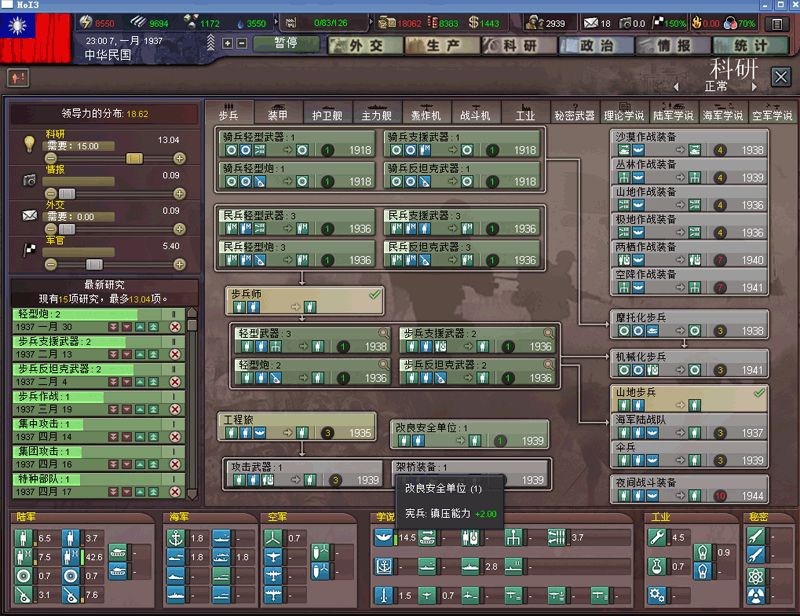 部队军官率高达164%,组织度高达54,平均部队经验度35%。