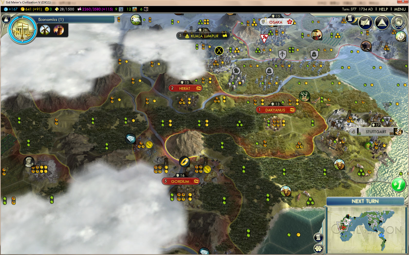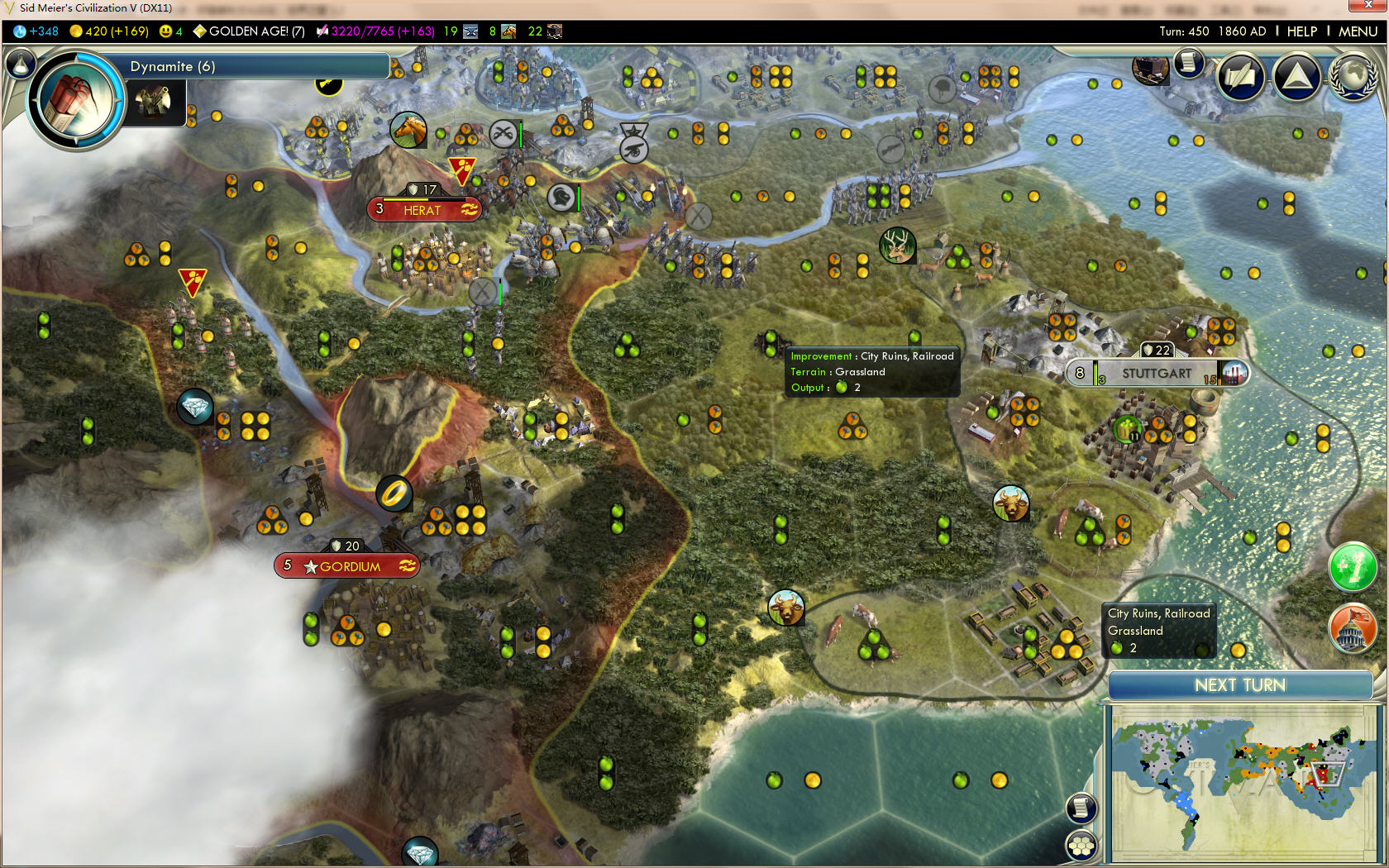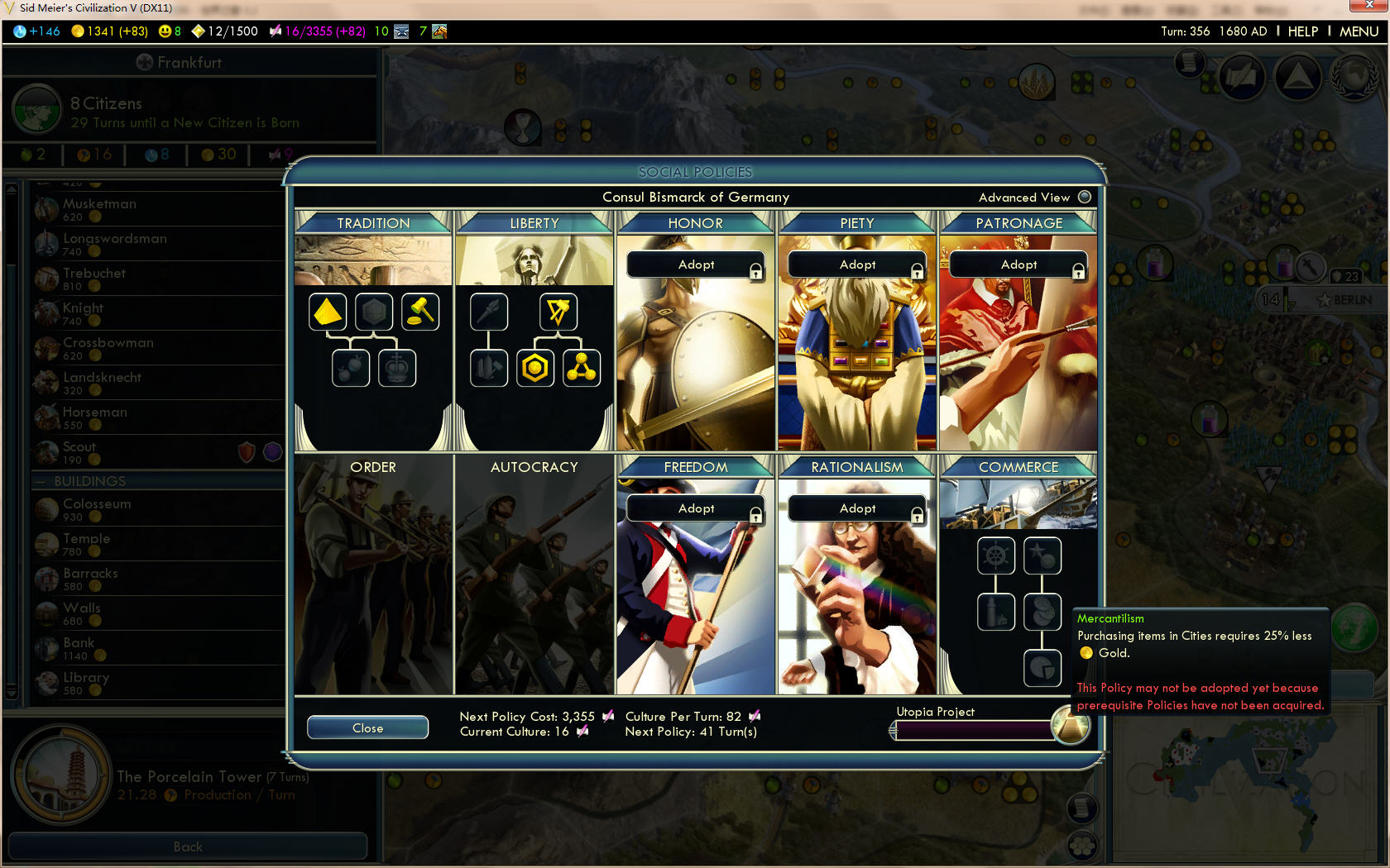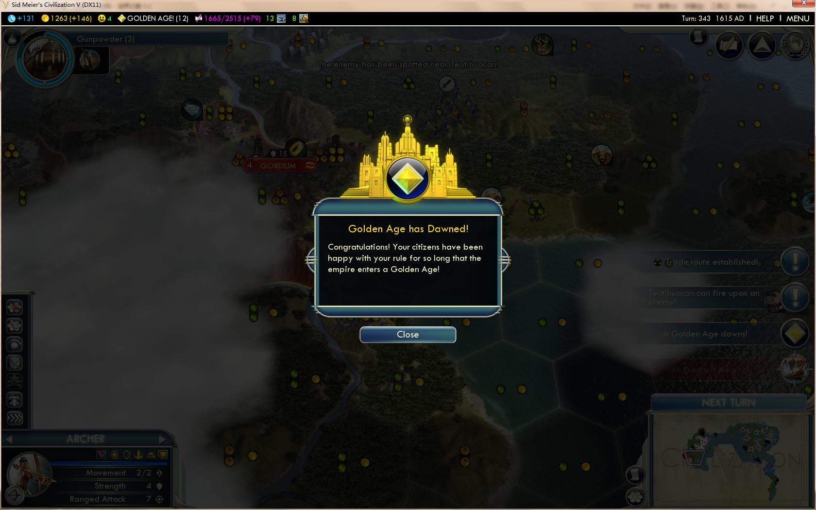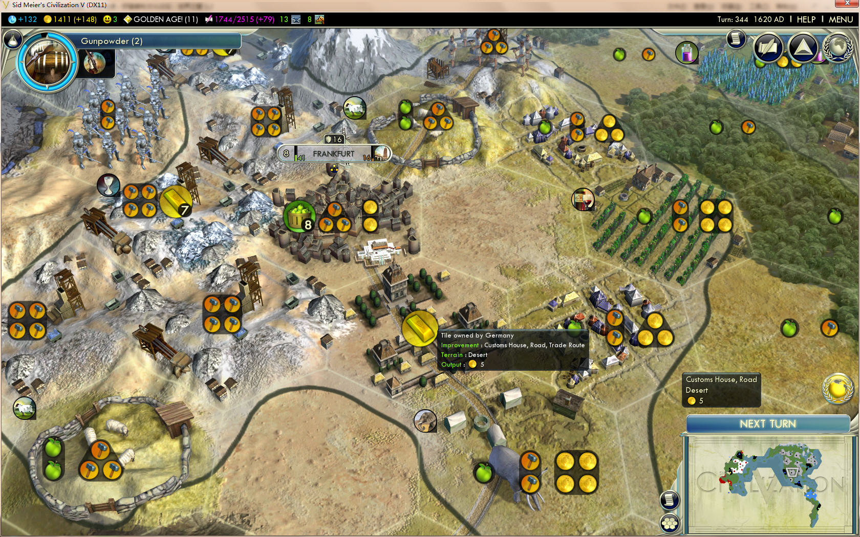 我得到了第一个大商业家,法兰克福的紫禁城也马上要造好了。另外又吞并了原属玛雅的一个傀儡城。
