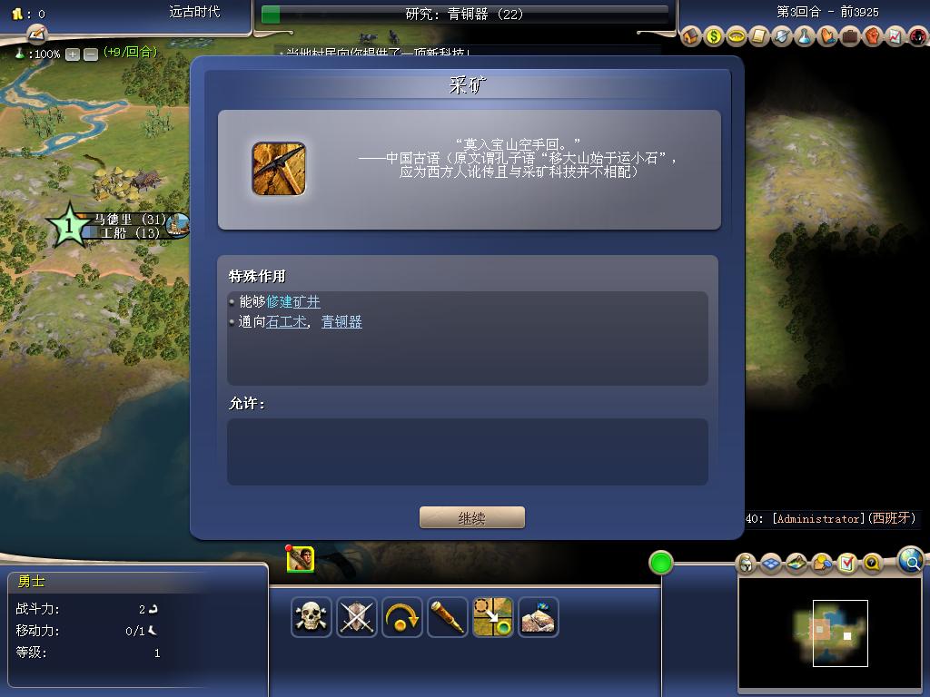 第一个蘑菇就踩出采矿,直接研究青铜器吧。