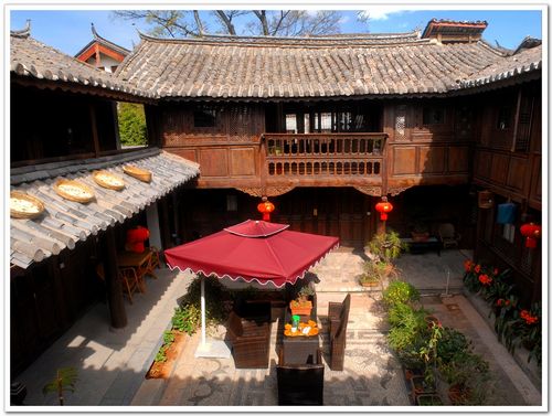 纳西四合大院设有二楼公共休闲阳台。午后,将自己扔在晃晃悠悠的摇椅上,沐浴着暖暖的太阳,品一杯香醇的普洱,看路上行人来来往往,所谓“偷得浮生半日闲”也不过如此了吧!