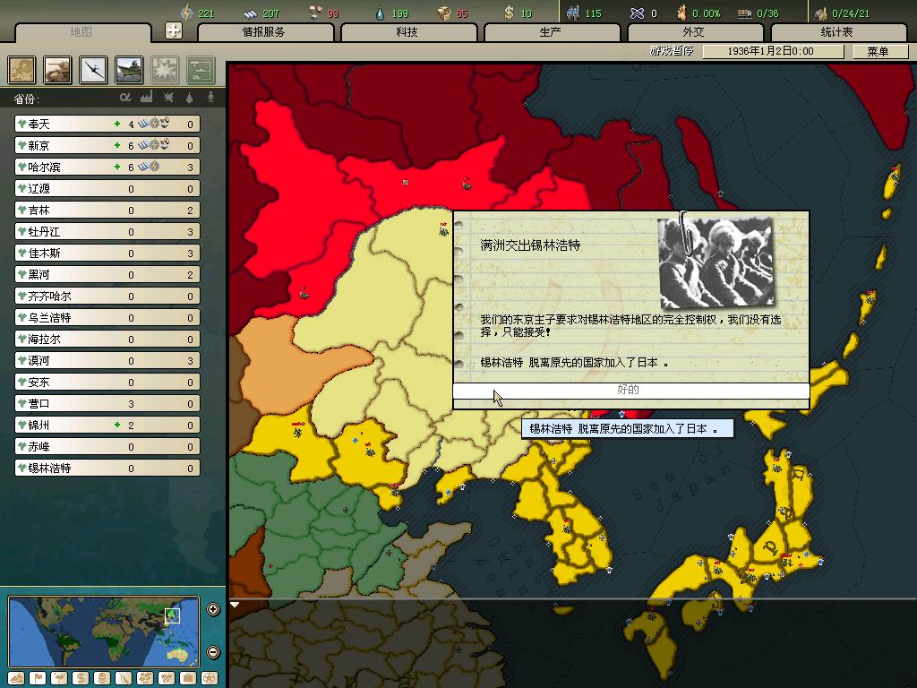 前段时间看了央10台《百家讲坛》俞大华教授的末代皇帝溥仪的讲座,不禁对满洲国的历史产生了兴趣。于是就想开一局小胡子2的满洲国来玩。3代机子跑不起,AOD和其他MOD也不熟悉。本人是新手,在历史知识和战略战术上欢迎各位老师批评指教,涉及意识形态和民族矛盾的话题就暂免在本帖讨论了。