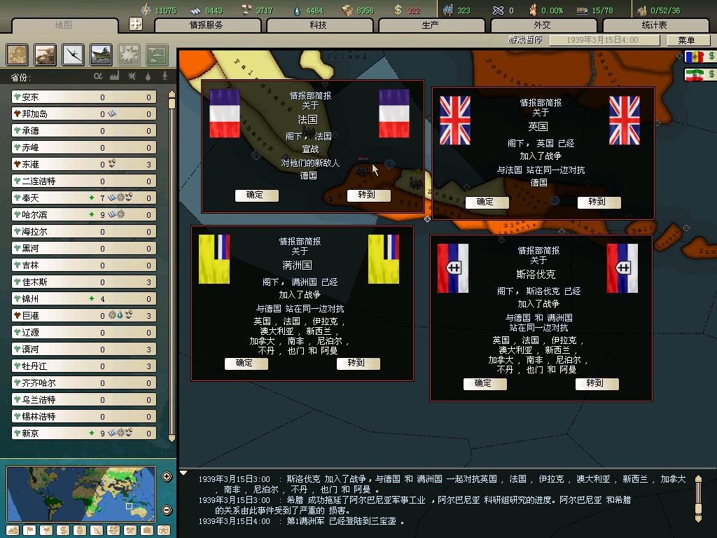标题: DA1.3原版36满州国娱乐战报, 已更新至:1948年夏季 中日满轴心对抗英法美同盟 欧洲反攻势如破竹 攻陷华沙 吞并波兰!