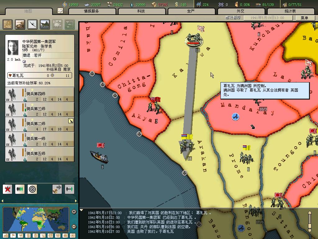 标题: DA1.3原版36满州国娱乐战报, 已更新至:1948年夏季 中日满轴心对抗英法美同盟 欧洲反攻势如破竹 攻陷华沙 吞并波兰!