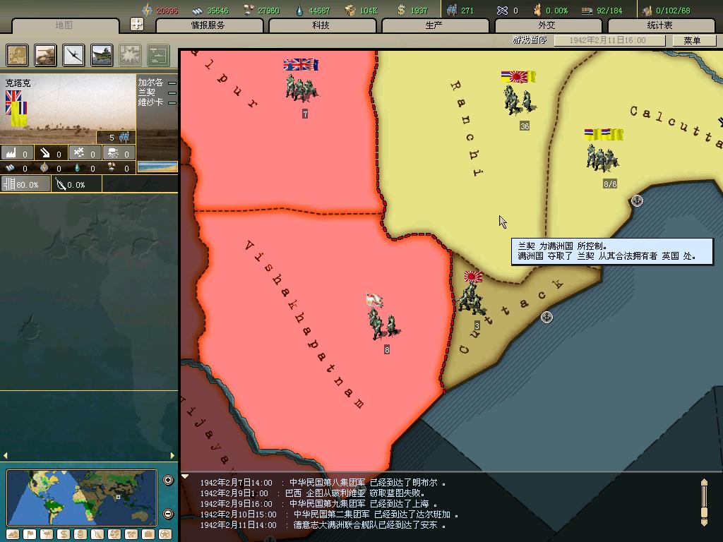 标题: DA1.3原版36满州国娱乐战报, 已更新至:1948年夏季 中日满轴心对抗英法美同盟 欧洲反攻势如破竹 攻陷华沙 吞并波兰!