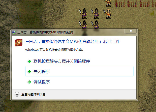 原先不使用兼容模式,在第一关进入第一回合提示后100%出现这个错误框,使用了兼容模式后不弹出错误框了,兴冲冲地玩到第5还是第6回合,就又出现了这个错误框,真是太扫兴了。搜了百度,有几条这个问题的信息,但是都没有解决方法。特来求救,多谢各位。