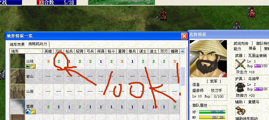 地形效果不足100的直接100;地形移动消耗减1。