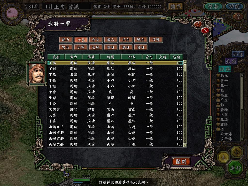 除了文官士兵盗贼老人孩童,其余都登场武将。包括南斗北斗这些虚构人物在洛阳都隶属王浚势力,管恪隶属吴势力。