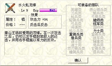 2.水火虬龙棒是短兵器,而同在“棍”类的普遍是长柄兵器,啥凤翅鎏金镗、折铁挝金刀的玩意儿都是这类型。