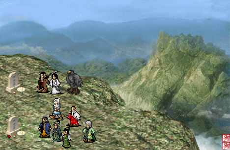 第一排(由左至右): 萧峰(初稿) 岳不群 洪七公 郭靖(金庸群侠传的服饰) 书生