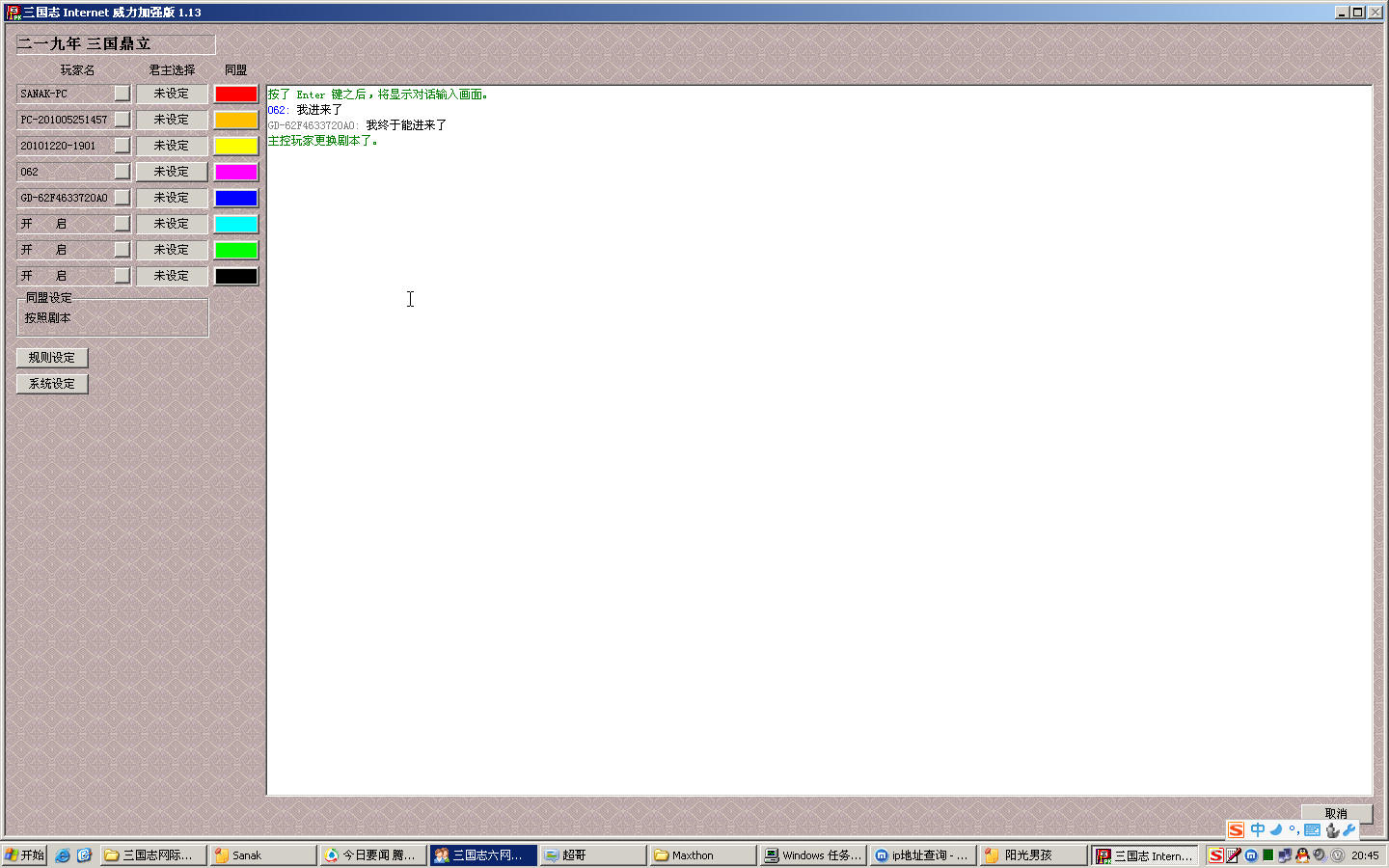 当时剧本是群雄割据-中原,6个人,没有电脑君主。