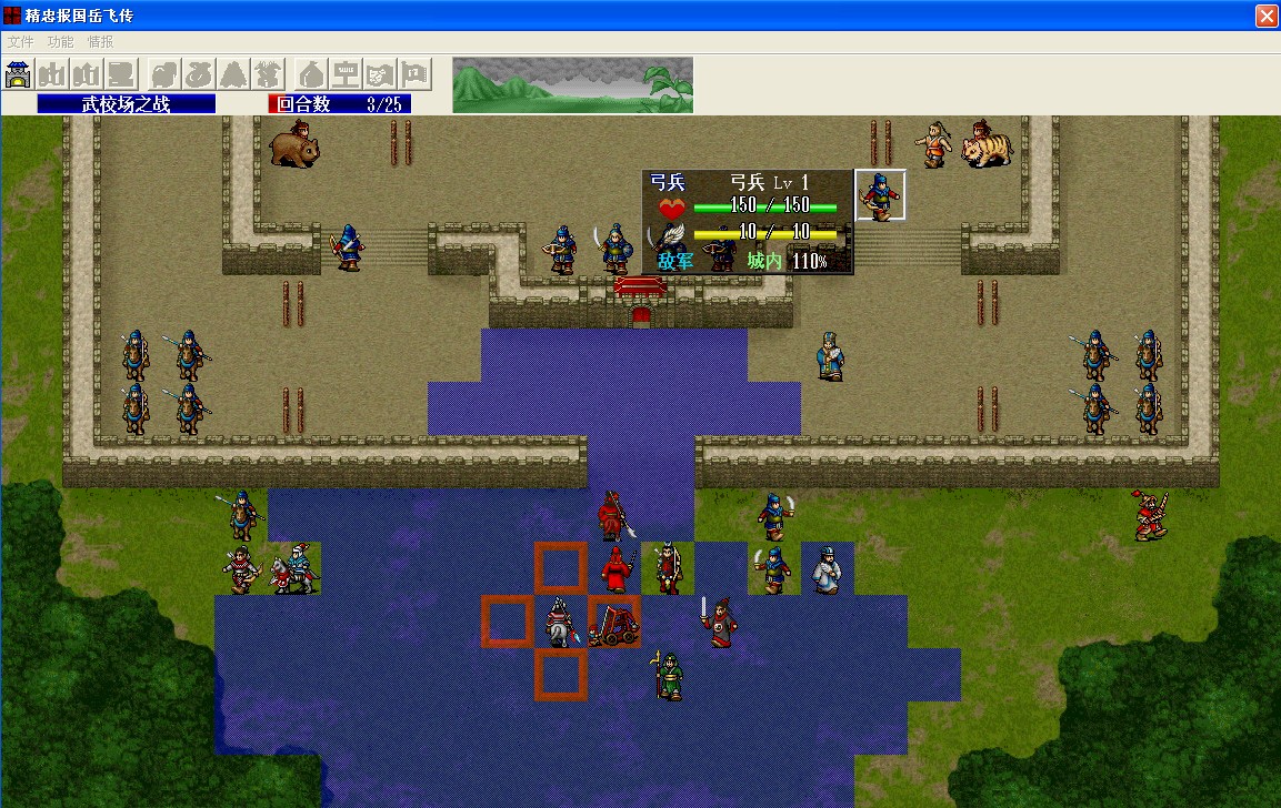 3,两友军合力击退中间的弓骑,左一被反击未退,岳飞出特技。