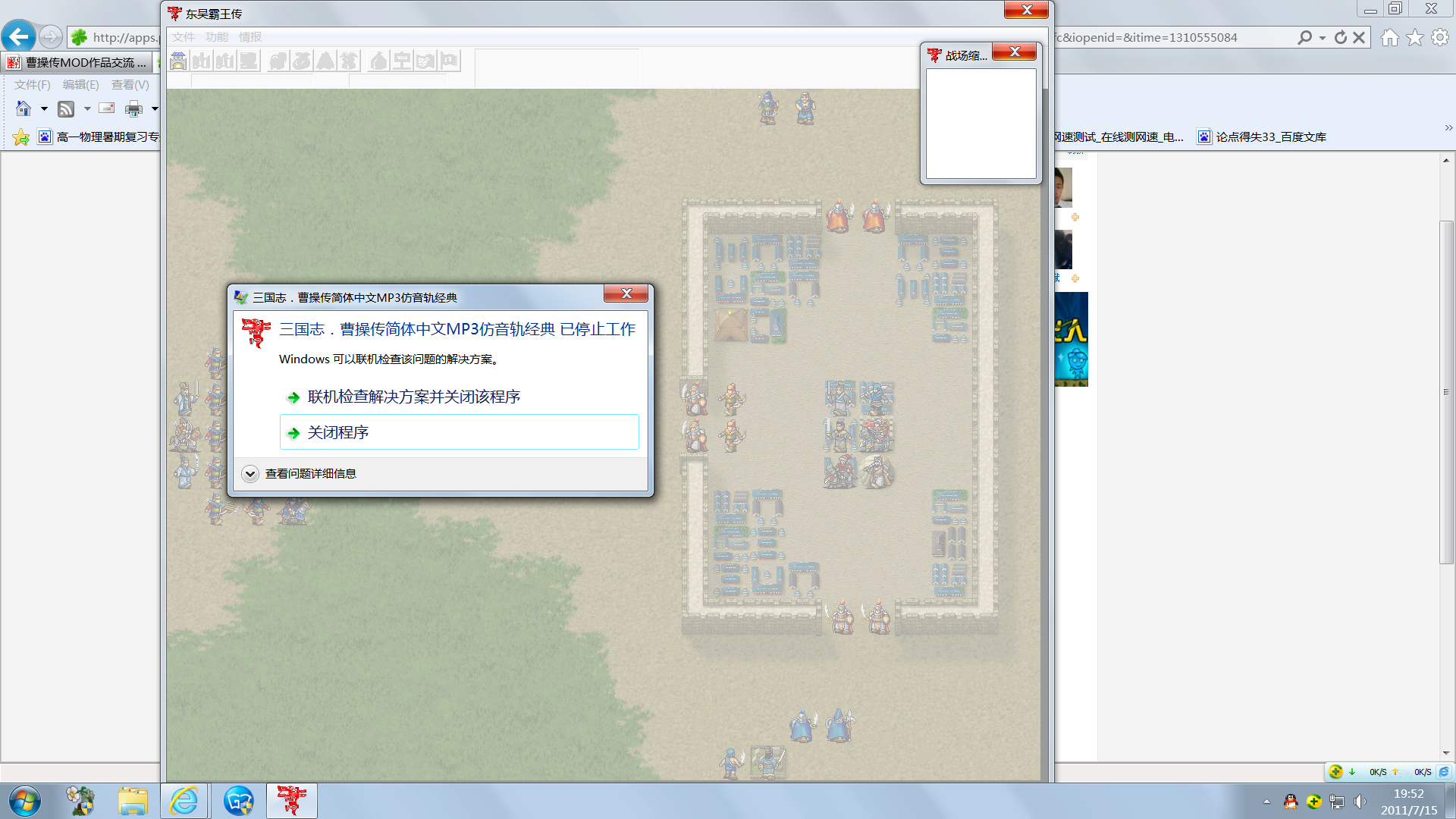 建议你下次遇上这种情况,只需要上载游戏运行时的画面,或是错误讯息的那个部份,不用上载整个屏幕的。