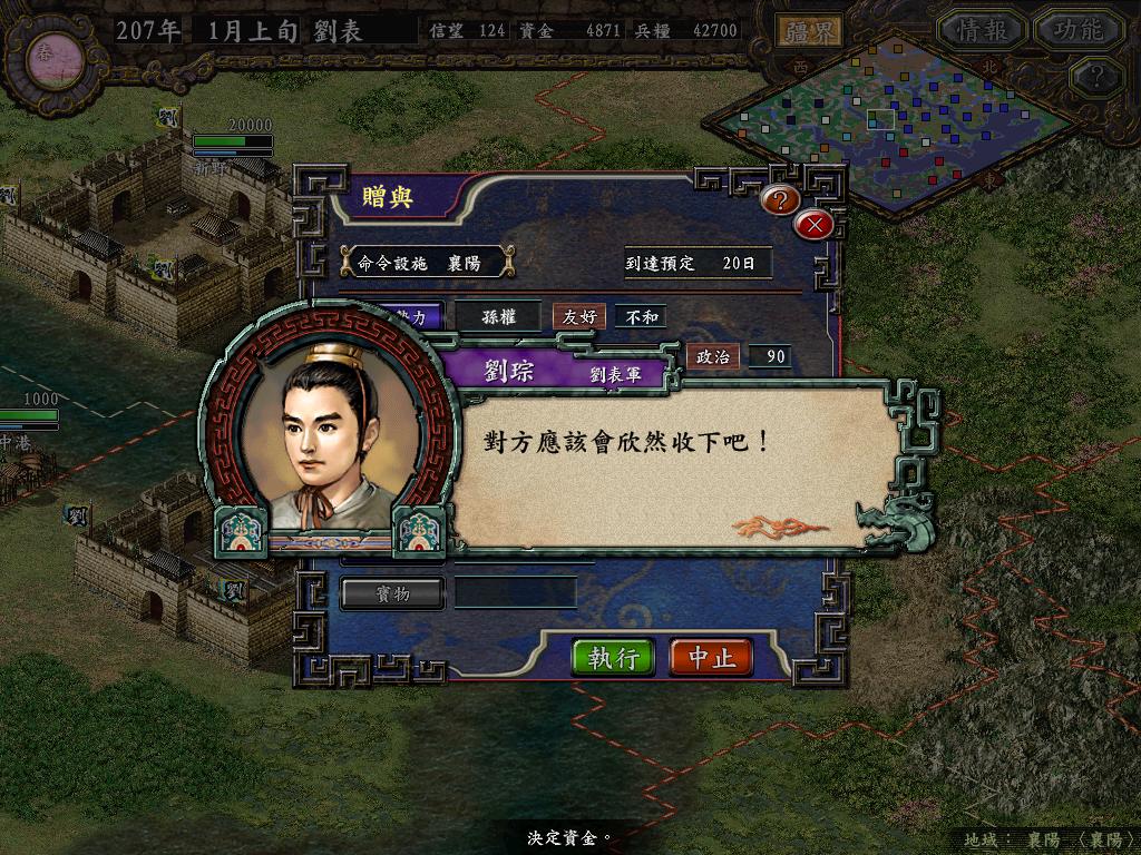 一直以来对三国志系列觉得最接近想象中真实的就是三九pk了,不过一直来都没怎么仔细玩过。这次看见优化伴侣的出现,重新激起了我对三九的热情,为了防止自己再度出现三分钟热度的现象,决定在论坛开个帖子,实时开始进度,剧本就采用pk原版的207年卧龙即将出山的剧本,势力选择刘表(一直都不喜欢用三雄),不过出于自己的恶趣味,将刘琮改了一下,以便今后做接班人。