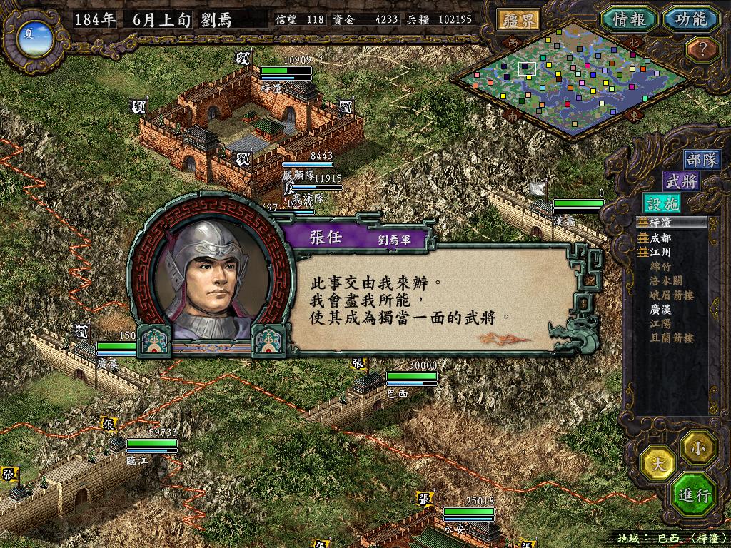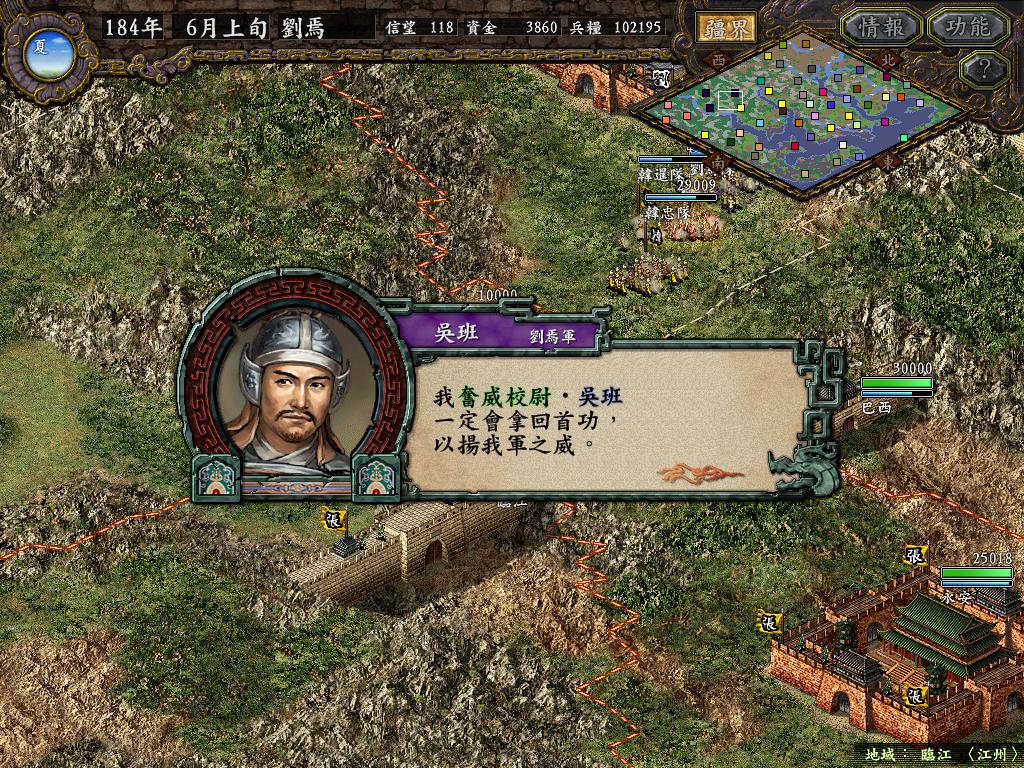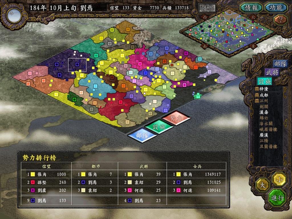 初步策略为南和孟获(基本上会和南蛮合并),北吞鲍信,西拒张角。