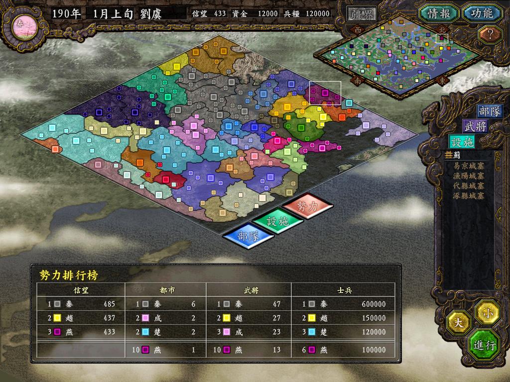 第二章 东进!图谋北平,公孙瓒,我来啦!消灭乌丸之后,燕军总参谋部在参谋总长-军师-牙门将军田豫的领导下给出了我军下一步战略方向:东进北平,消灭公孙瓒!之所以决定选择东向,主要是在于周围四个势力张燕的晋、韩馥的韩、袁绍的赵、还有最后的公孙瓒,张燕和袁绍是好意,不用考虑。韩馥手下沮授为首的谋士可以让我手底下一帮大老粗没方向,估计攻不过去。就算攻过去了,将来也要面临袁绍的竞争和公孙瓒的拖后腿。所以决定先行东攻公孙瓒。不过为了防止韩馥来捣乱,我还是让焦触带5千人输送至涿县,焦触自己和徐邈一起经营鲜城。