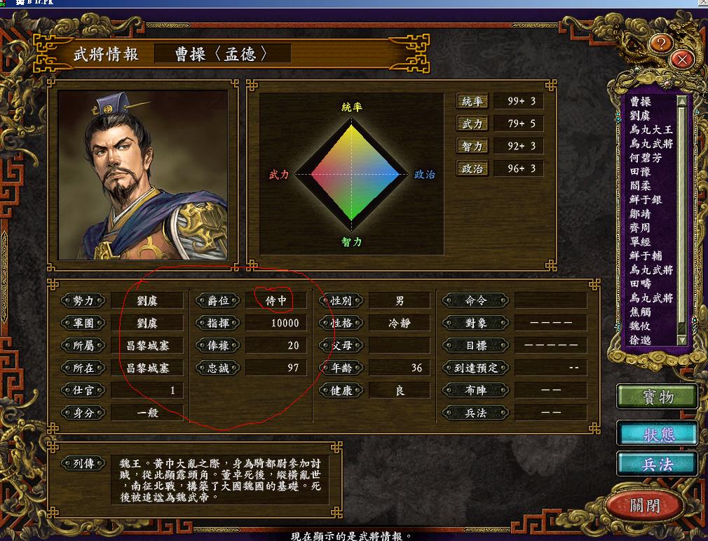 令人惊讶的事情发生了,驻守在昌黎的田畴在一次军情阅览中以外的得到线报,著名将领伟大的军事家曹操同志在韩馥手下入仕了,但是忠诚度只有75!!田畴抱着试试看的心态前去联系了一下,居然,曹操答应了我军的邀请!!!!
