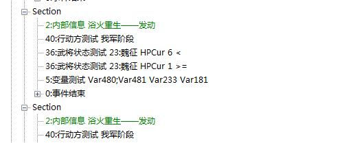 浴火重生之中,HP量规定在1到5之间,480是开特技,481是浴火重生次数判别,233是曹宁是否撤退,181是单场浴火重生是否发动的变量。