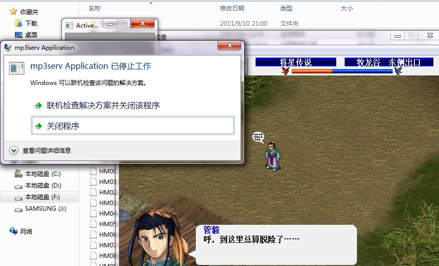 打到磨盘山之战,老是弹出一个,activemovie windows的框,关了会继续弹。。。
