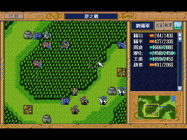 王甫走到左宝物库右2下1,赵累到王甫右2,廖化到王甫下2左1(陆逊不会图他的低智力放弃树林去草原)。