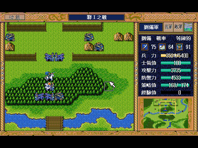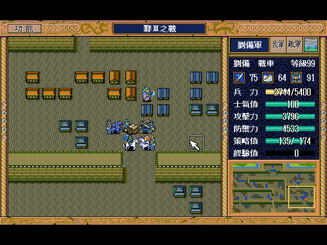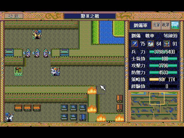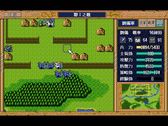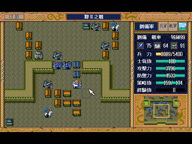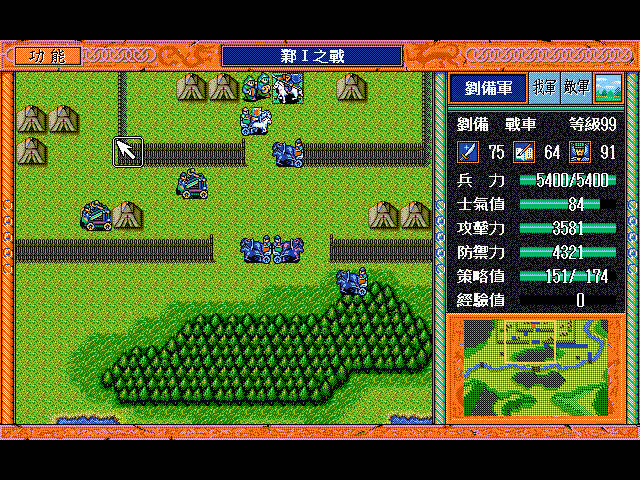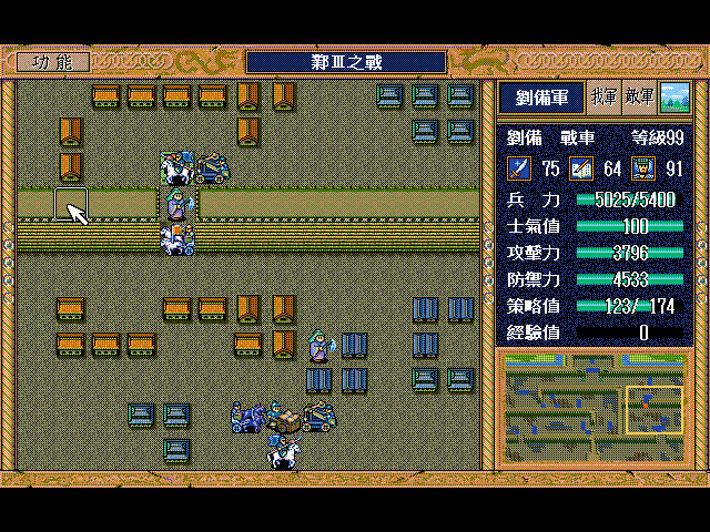 无名骑兵(上2)和周泰(左上)挑拨刘备用光策略后原地休息占两个位,剩下一个位(右上)灭人