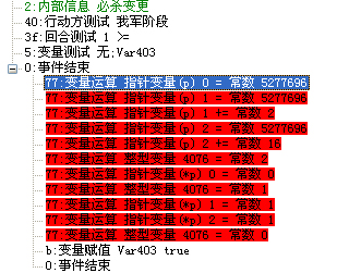77:变量运算 指针变量(*p) 0 = 常数 1 ;给指针变量0赋值为1 这里的1就是武将的data号,这样就让1号武将习得0号必杀技