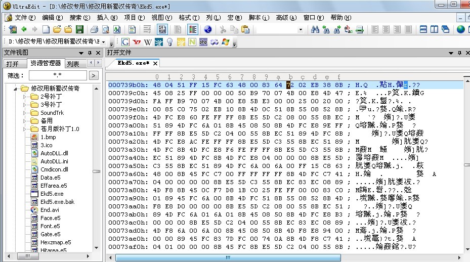 用UE打开exe文件,可是怎么确定739BBH的位置并且修改呢?