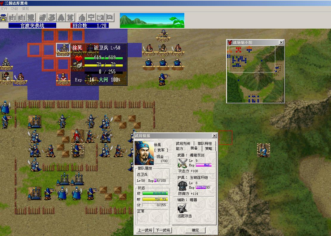 原攻略估计写得太简单了,我第一次玩打了20回完还没第一次击退张辽,主要是地图下面的那些拐子马太强了,二回合可以冲上来,而且无限复活。。
