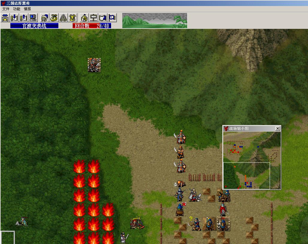 击退张辽后,马上将右边山上的关卡占了这样就增加了5个回合,突到了30回合,为什么要打右边关卡,主要是因为那儿关卡我方出来的守兵是山贼,