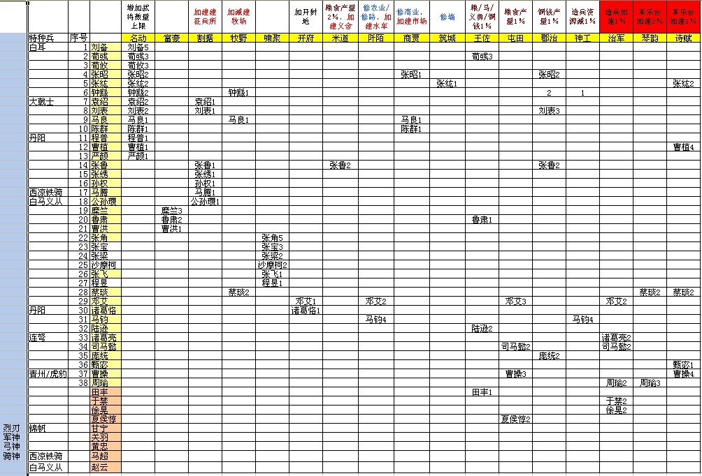 11,钟繇,名动二级,超级内政将,有郡治,牧野,神工,神工的将领比较少,减少军队编制费用百分之一作用不大,但牧野太重要了,骑兵威武啊。