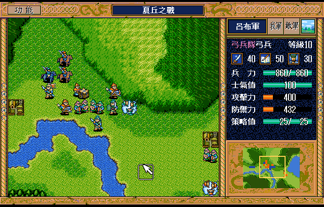 我:刘备奔向鹿砦,糜竺原地激励赵何,糜芳左上焦热书陈宫,关纯原地激励自己,赵何左方牵制武术家(失败),张飞上方牵制(失败)关羽下方牵制(失败),简雍原地援助赵何,孙乾左侧攻击骑兵