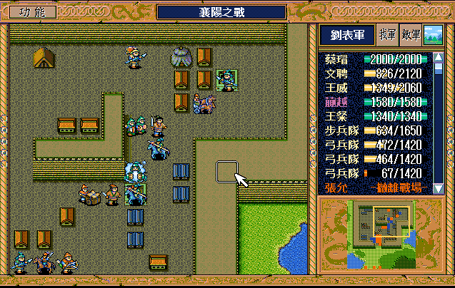 夏侯惇可以牵制到赵何但是会原地休息。骑兵进村攻击糜芳,弓兵攻击孔明,其他人攻击赵何反击