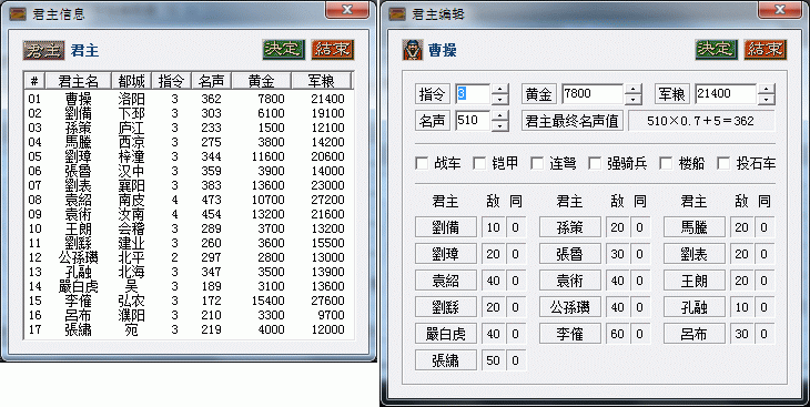 新增的君主编辑模块可以修改敌对和同盟了,第一次增加这个,希望能好用。