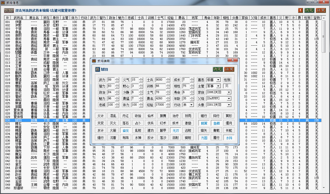 各个模块和界面都是参照三国志5威力加强版的编辑功能的,但比威力加强版能编辑的内容更多。