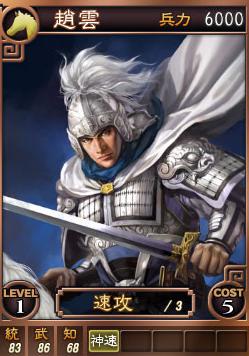 所以你见了铜卡上统率83,武力86,智力68的赵云不要惊讶,到了金卡上可是93,96,78的数据