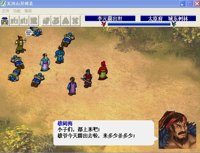现在终于玩到李元霸出世,但辛辛苦苦玩了半天,竟然没发生三五加入的情节,我走的是雄阔海路线,仔仔细细核对了所有关系大雄加入的12个条件情节,都完成了啊,但为什么没发生救人情节呢??请高手指点。这游戏都玩第四次,难道还要重打?汗啊。。,,,,,