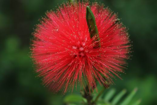 学名:Calliandra haematocephala,日文名:ベニコウガン,中文名:朱缨花,也叫红绒球。