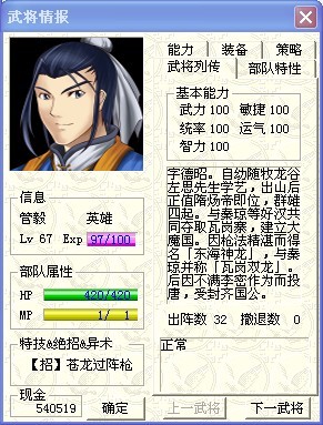 我也冲冲五维100,不过智力果不够,剩2个没吃满。徐茂功的武力果未规划好,应该可以缩减到2人没满。