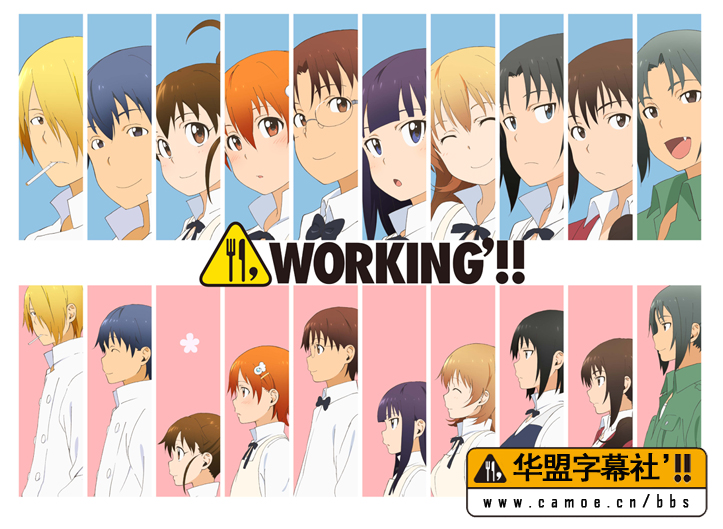 《 Working!! 》,中译名《迷糊餐厅》,由网络四格漫画改编而成的动画,目前第二季好评放送中。主要讲述北海道一间家庭餐厅”Wagnaria“中发生的日常有趣故事,由于店员都有些特殊能力或癖好,而被戏称为非正常人类研究所附属餐厅。