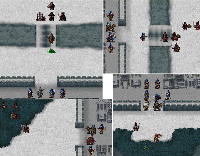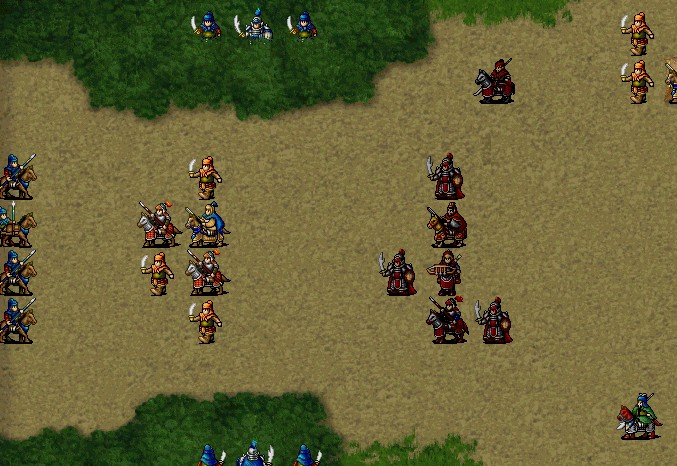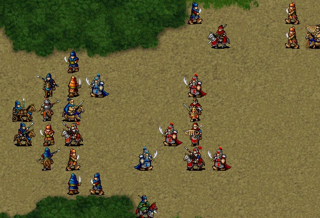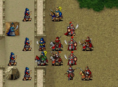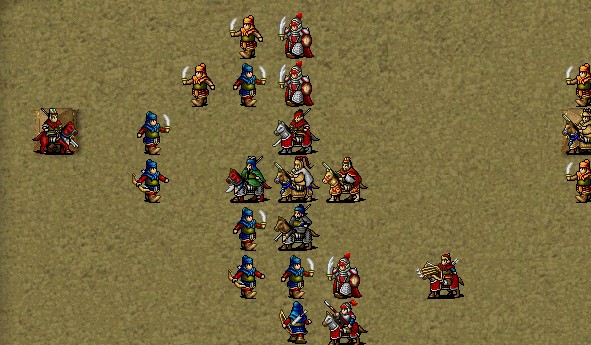 这三点中最难的是第三点。无SL,意味着攻击时要做好90%或95%甚至更高的命中率被格挡的准备,防守时要考虑到70%的格挡率被连续命中的后果,以及被爆发力和士气高一档的敌军双击暴击的情况;意味着不能在关键时刻用谎报、定身、封咒等策略废掉敌军部队,不能在关键时刻用压迫、咒骂、钝兵等策略降低敌军战斗力,不能在关键时刻用爆焰、火龙、烈火等命中率不到90%的策略杀敌,也就意味着不能出现这种所谓的“关键时刻”——某次小概率(小于90%)事件必定要成功,否则无法过关。在敌军远程多的时候,特别是后期攻城战,炮车和步弓的攻击范围大、数量多、威力强,一回合内有多个敌军能攻击到我方,而我方的法师和远程只能承受一次攻击,如何能在不依靠格挡的情况下生存下来并消灭远程,是本打法最主要的难点。实际上整个过程中真正的硬仗并不多,对付远程的战术实施起来很简单也很单调,后期可以看到,只要我军有适当的走位和足够的耐心(曹操传宽松的回合数应该就是为此而设的),基本上不会给敌军有击退我军的机会。当然在裸奔的情况下,要100%避免这些意外情况不太可能,但是大多数情况下做到99%的把握还是有可能的,有些实在困难的关卡应该也有90%以上,也就是说用这种战术打10次的话,可能平均有一次过不了关。不过由于前面几关需要依靠友军,有较大的随机性,也说不准有几成把握。后面随着我方人员逐渐齐全,战术便可以顺利实施了。