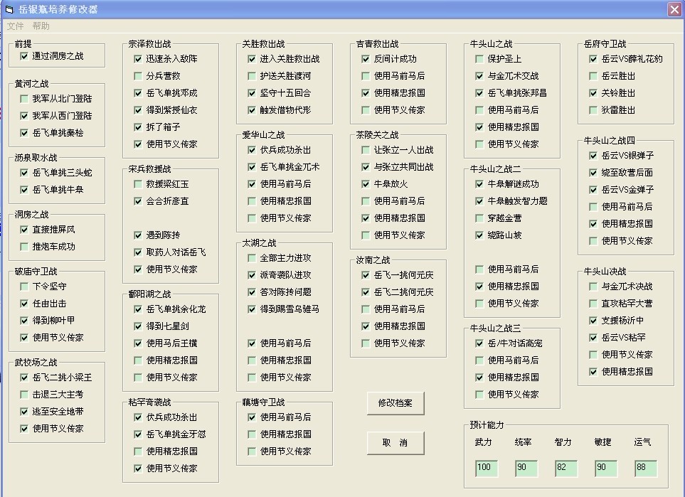 不想用修改器 用培养皿计算后得出的数据就是这个 运气就差两点 是不是这两点运气会很容易刷出完美游奕呢?观音庙游奕应该是智力+4 苗刘平定贰中智力加2 这样就是100 90 88 90 90了 再吃一个智力果就是100 90 90 90 90了