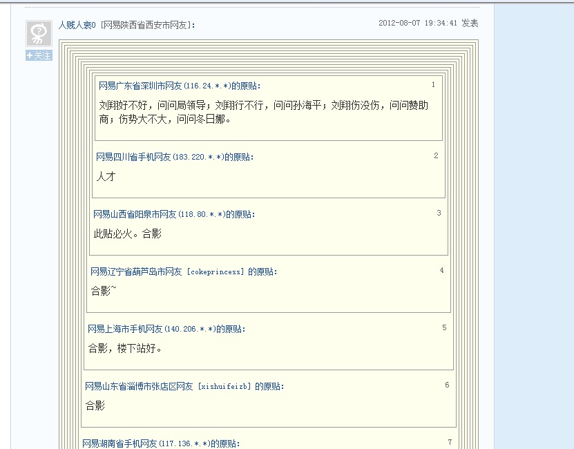 我昨天还说刘翔要怂,要不还没比就老说自己有伤。我老婆还说可能是战术,我说跨栏没啥战术可言,就几十秒的事情,大家还不是拼命跑,管你在哪个位置。李宗伟没打过林丹,说自己有伤,那也是比了以后。没比以前就吵吵自己受伤的。