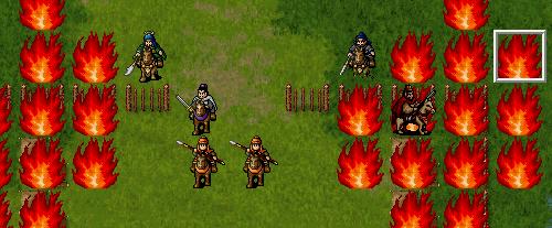 曹操是点火之前进去的吗?如果是的话,你的栅栏那一格地形有问题。栅栏理应是无法移动的。