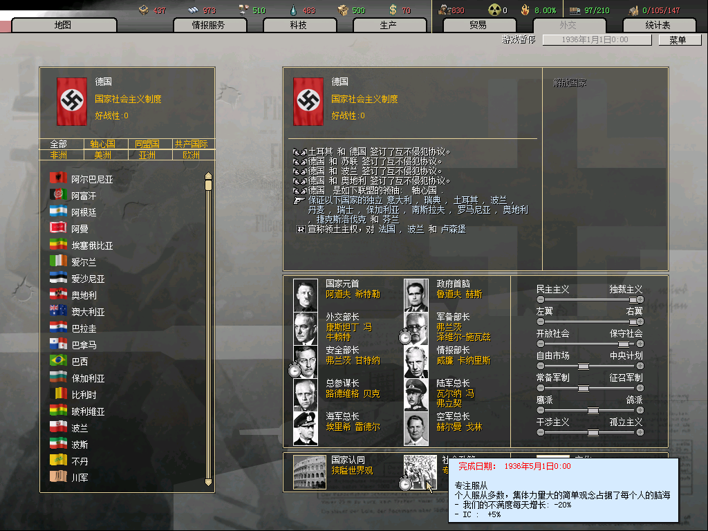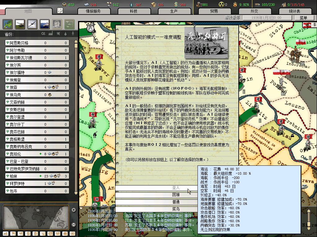 从MIH0.52一出就开始玩,到现在都快一年 了,还没开始波兰战役,时间实在不够啊,并且0.52里面省份太多,人老了,玩起来就觉得好累。不过我一定会把这个坑填完的。
