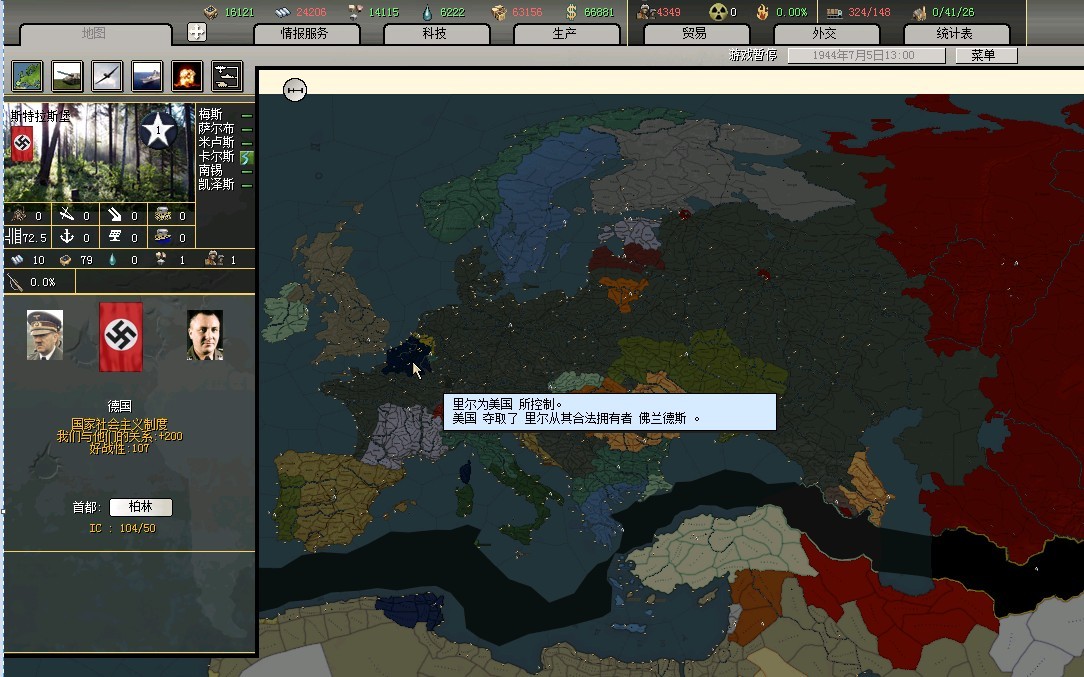 小胡子宁与共党不与英米,谁让你炸的这么狠?一点余地都不留?东线大军大踏步的前往法国,美国的老爷兵速度被收拾干净,而大胡子则在差点自杀之后,时来运转,收复斯大林格勒。