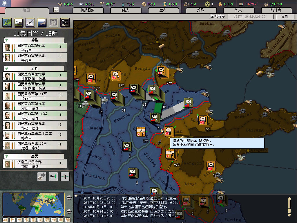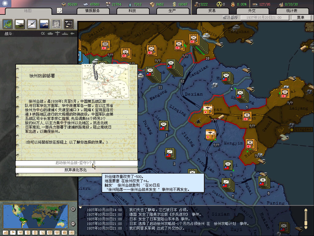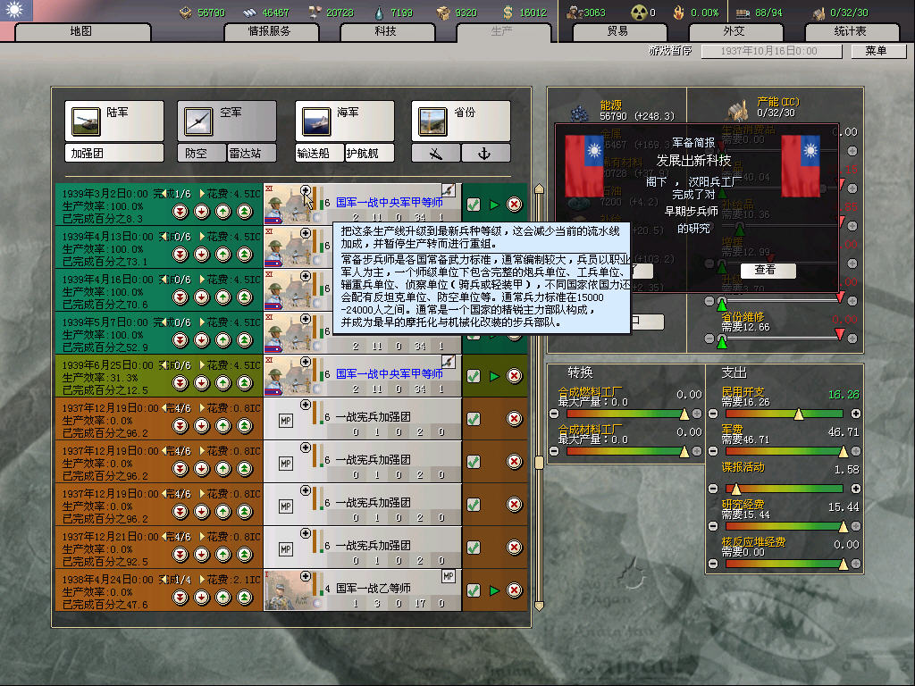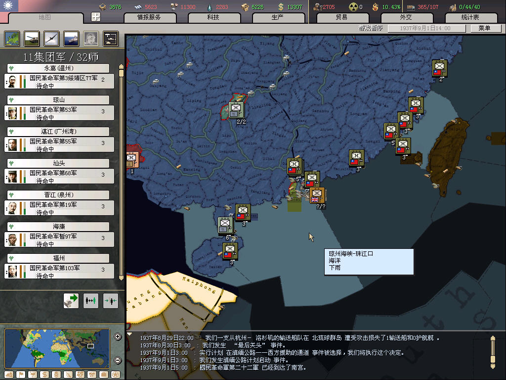 南方,基本就在沿海放一些民兵师,重要的地方放标准师,一般来说日军会在半年之后才登陆,放民兵的主要作用是防止乱登陆,挡是挡不住的