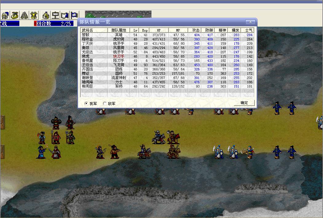 除了秦琼老齐自己气合以及装墨阳剑的步兵外,用十字"点兵";再是所有人加敏,用九宫"军训"