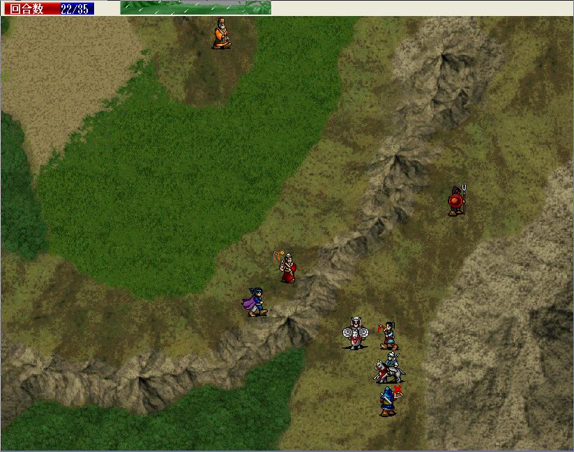 第4回合开始杀上边的伏兵,稍微SL一下(这里SL毫无难度),好好利用一下滚云枪,一个半