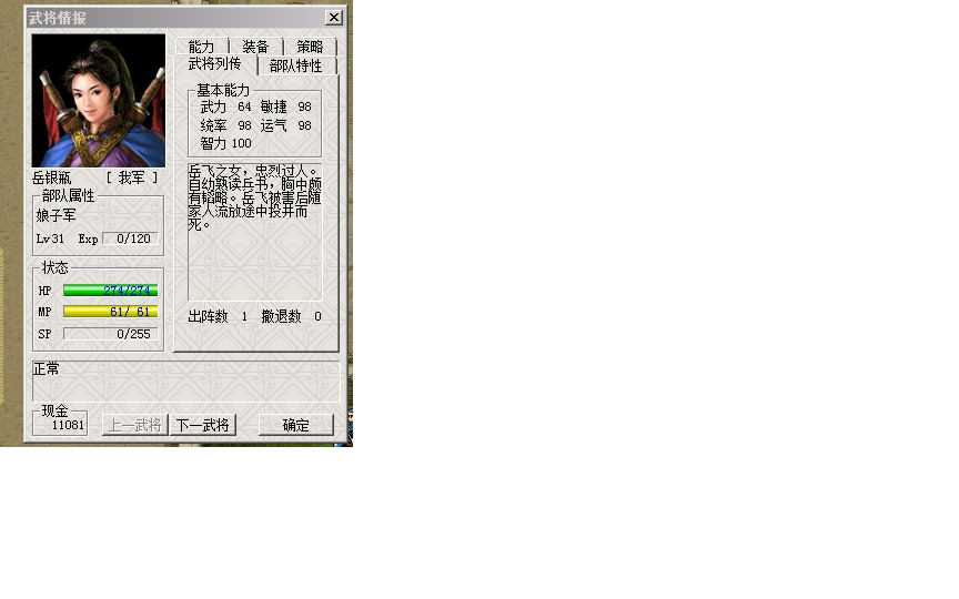 以下是五围 :武 64 敏98 统98 智100 运98