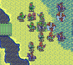 我自己调整一下位置,一切搞定了。周仓进村,关羽左上(如果上方的话,弓兵还是假情报关羽)牵制弓兵。弓兵下回合就假情报刘屁了。